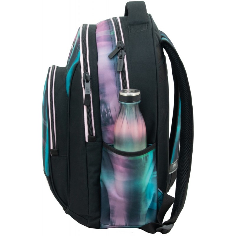 Mochila escolar doble cuerpo. Con dos compartimientos de gran capacidad y apertura con cremallera. El comportamiento principal tiene un bolsillo interior acolchado para contener laptops o tablets.Bolsillo frontal con organizador para bolígrafos y útiles escolares pequeños. Bolsillo en la lateral derecha para transportar botellas. Adaptable a carro gracias a sus correas horizontales en su parte posterior. Espalda y tirantes ergonómicos con acolchado extra y material transpirable.