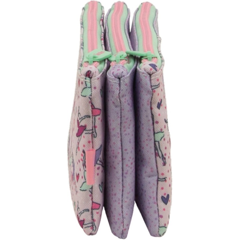 Estuche escolar con tres bolsillos independientes separados y apertura superior con cremalleras. Ideal para tener los útiles escolares organizados y clasificados por uso. Gracias a su tamaño es fácil de transportarlo dentro de mochilas y bolsos.